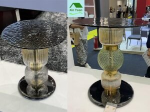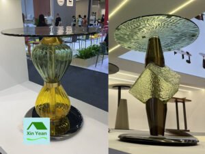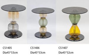 This Tanghulu Side Table’s design is inspired by the traditional Chinese snack, tanghulu. The tabletop features wavy glass, combined with the skewer-like support rods, making the entire side table look exquisite and artistic. It can serve as a practical home sofa side table or as a stylish accent in commercial office and lounge areas. Not only is it functional, but it also brightens up the space, bringing a cheerful mood.