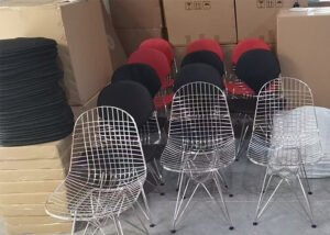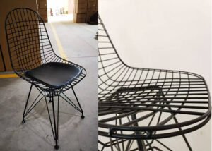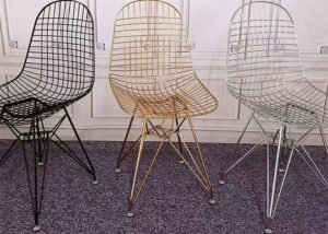 Eiffel Wire style dining side Chair can be made with different color as below shows: Black powder-coated, golden, electroplated original color. Also normally  the seat with seat cushion, or both seat and back with cushions for better sit feelings.