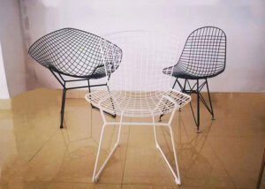 Functional and practical thanks to its durable and sturdy construction of stainless steel and complimentedby optional cushions in your choice of upholstery, the Replica Eiffel Wire Chair  will be a conversation starter as much as it is your dining chair.