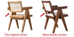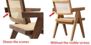 The left photos the back you can see the screws, and the right one Chandigarh armchair with wood hidden screws for more better looking.