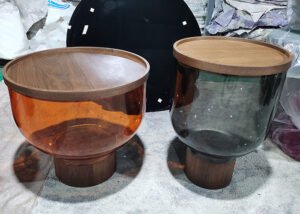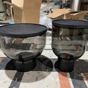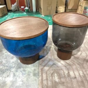 Set glass Bowl coffee table it’s made of wood top/feet and tempered glass for the body part.