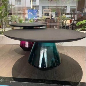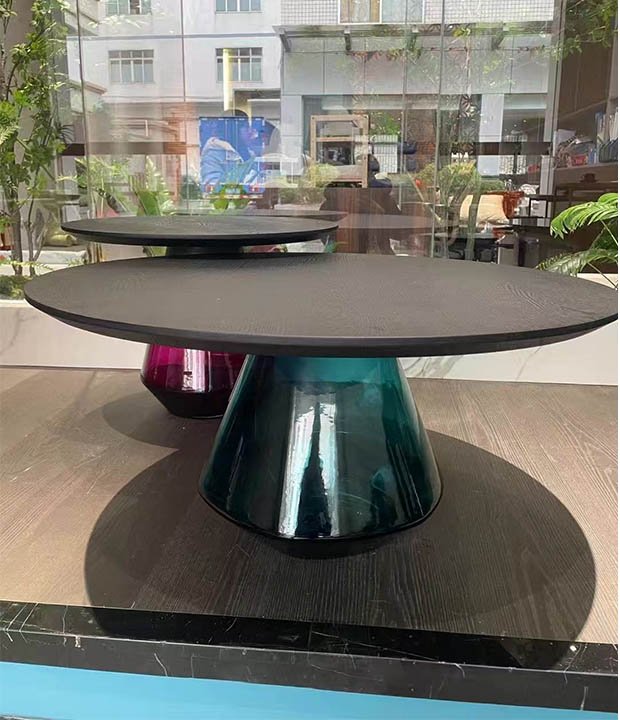 Set glass Diamond coffe table it’s made of wood top and tempered glass base, the wood top will remain to see the clear wood grains, each top wood grain would be wary from one to another.