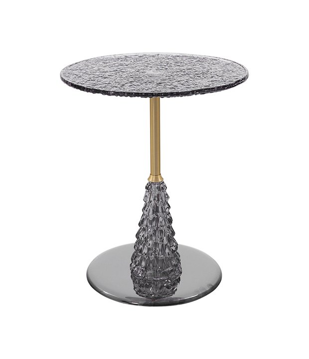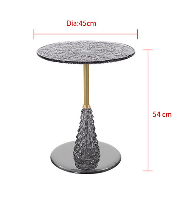 Material: Light gray Water ripple glass top + Brushed golden pole +Mirror surface stainless steel feet