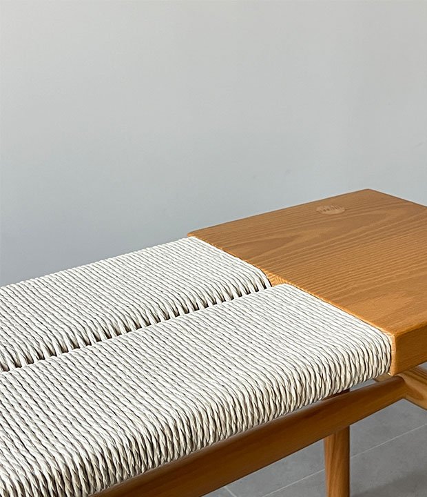 Woven solid ashwood bench, this versatile bench functions perfectly as a dining bench, a hallway seat for changing shoes, or a comfortable resting spot in any room.